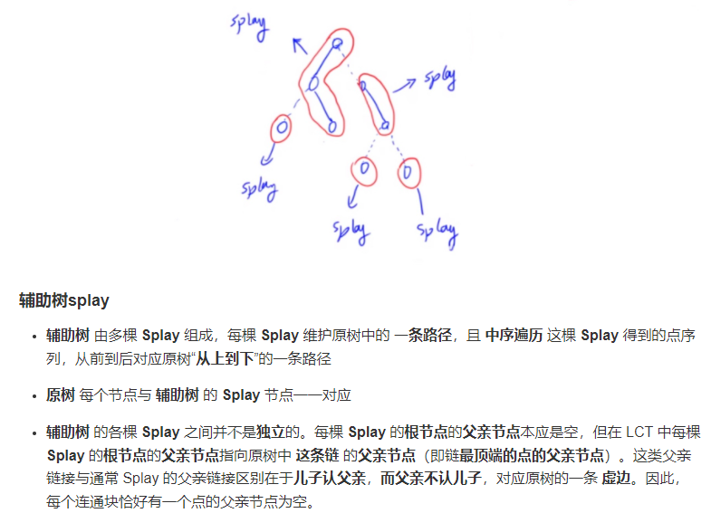 int findroot(int x) //找到 x 所在的原树的根节点,再将原树的根节点旋转到辅助树的根节点